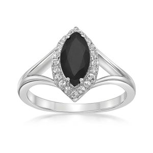 925 Sterling Silver Marquise Black Onyx ring with White Topaz Accent