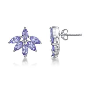 925 Sterling Silver Flower Earrings with 6x3 Marquise Amethyst