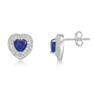 925 Sterling Silver Earrings with 5 MM Heart Shaped Created Sapphire and Created White Sapphire Halo