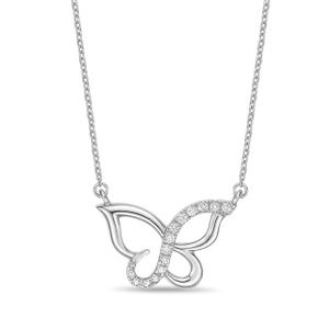 925 Sterling Silver Diamond Butterly Pendant Necklace - 18 Inch Cable Chain | 0.14 Carat Total Weight