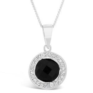 Women's 925 Sterling Silver Black Onyx and White Topaz Round Pendant in Sterling Silver