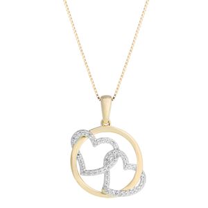Women's 14K Yellow Gold White Diamond Double Heart Pendant