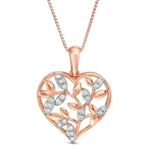 Women's 14K Rose Gold White Diamond Heart Leaf Pendant