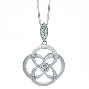 Silver Necklace Pendant with 0.12 cttw Diamonds with Box Chain