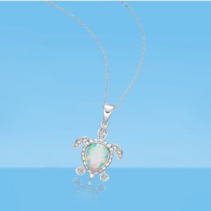 Sterling Silver Created Opal Turtle Pendant with .015 cttw Diamonds