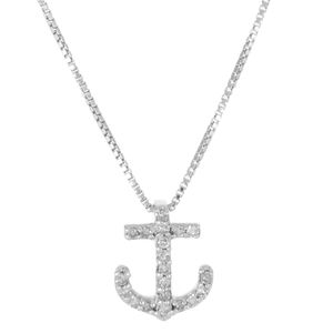 Sterling Silver 9MM Anchor Pendant Necklace with 0.10 cttw. Diamonds - Nautical