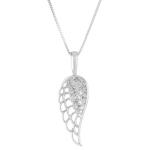 Sterling Silver 28MM Angel Wing Pendant Necklace with 0.045 cttw. Diamond - Gift