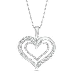 Round Diamonds 925 Sterling Silver Double Heart Pendant with Round - 18 Inch Box Chain