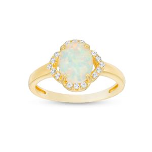 Yellow Gold Plated Sterling Silver 9x7 Cushion Cut Created Opal Ring with Created White Sapphire