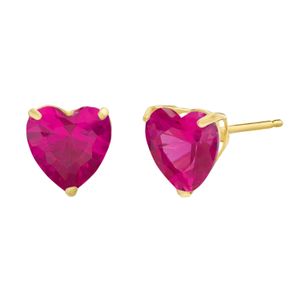 925 Sterling Silver with 5 MM Heart Shaped Created Ruby Earrings with CWS and White Enamel Halo