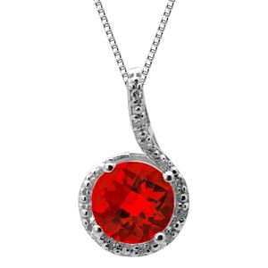 1.6 cttw Round Created Ruby Diamond Sterling Silver Pendant 18 Inch Chain