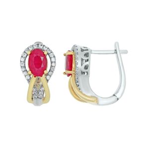 10K Rose Gold Princess Dianna Earrings with 6x4 Oval Cut Ruby and 0.11 Carat Diamond Halo
