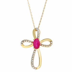 14K Yellow Gold Oval Ruby Pendant Necklace with .01 cttw Diamond - 5MM - 18 Inch