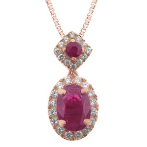 10K Rose Gold Princess Dianna Pendant with 7x5 Oval Cut Ruby and 0.08 Carat Diamond Halo - 18 Inch