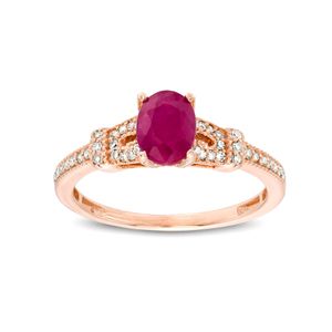 10K Rose Gold Ring with 7x5 Oval Cut Genuine Ruby and 0.16 Carat Diamond Semi-Eternity