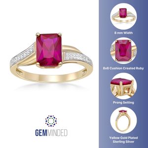 Yellow Gold Plated Sterling Silver Ring with 8x6 Octagon Cut Created Ruby and Created White Sapphire