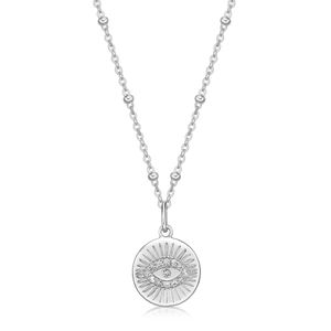 925 Sterling Silver Eye Charm Pendant Necklace with White Topaz - 18 Inch Cable Chain