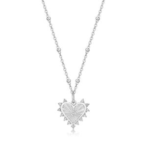 925 Sterling Silver Heart Shaped Charm Pendant with White Topaz - 18 Inch Cable Chain
