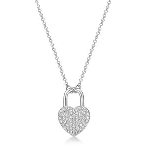 925 Sterling Silver Heart Pad Lock Pendant Necklace with White Topaz - 18 Inch Cable Chain