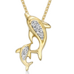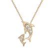 Gemminded 0.02 Round Diamonds 10K Yellow Gold Mini Mother and Child Dolphin Pendant with - 18 Inch Cable Chain