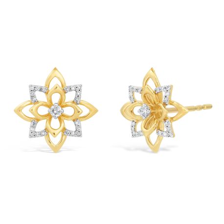 Gemminded Round Diamonds 925 Sterling Yellow Silver Layered Flower Stud Earrings, 0.12 Cttw