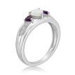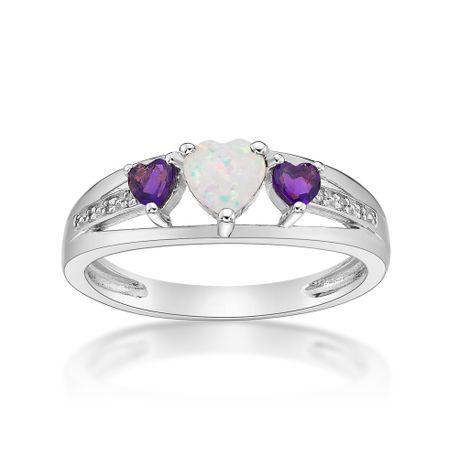 Gemminded 0.12.00 Heart Shaped Created Opal 925 Sterling Silver Ring with 0.24 Amethyst
