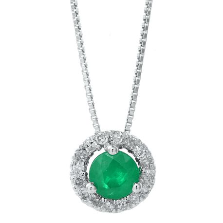 Gemminded 0.15 Carat Diamond and 0.40 Carat Green Emerald Round Pendant Necklace in Sterling Silver on 18 Inch Box Chain Spring Ring Birthstone