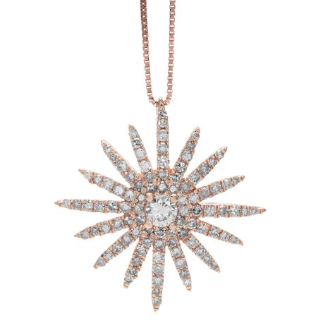 Gemminded 0.60 Round Diamonds 14K Rose Gold Starburst Pendant with - 18 Inch Box Chain