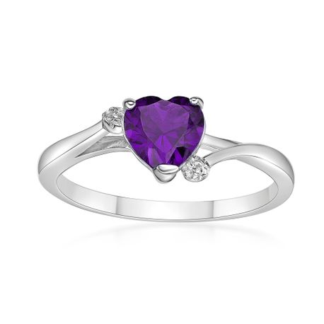 Gemminded 0.70 Heart Amethyst 925 Sterling Silver Ring with 0.08 White Topaz