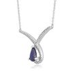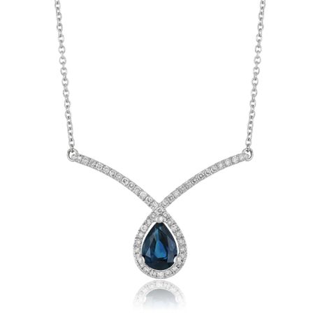 Gemminded 0.75 Pear Sapphire 10K White Gold Collar Bone Necklace with Diamond - 16 Inch Cable Chain