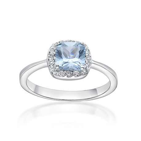 Gemminded 1 Cushion Created Aquamarine 925 Sterling Silver Ring with 1.20 White Topaz