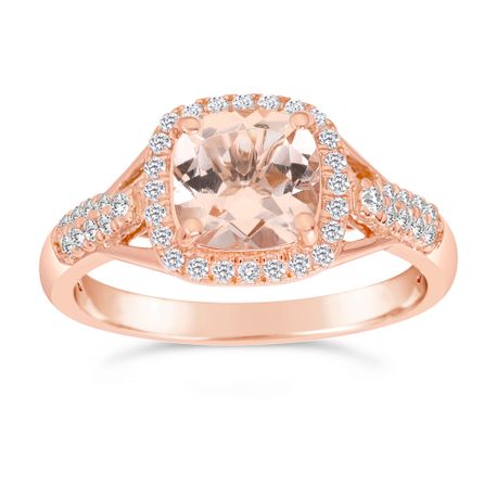 Gemminded 10K Rose Gold Cushion Cut Morganite and 0.25 cttw Diamond Ring