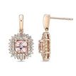 Gemminded 10K Rose Gold Earrings with 5 MM Cushion Morganite and 0.50 Carat Diamond Halo