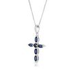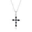 Gemminded 10K White Gold Cross Pendant with 4x2 Marquise Cut and 2.5 MM Round Genuine Sapphire - 18 Inch Box Chain