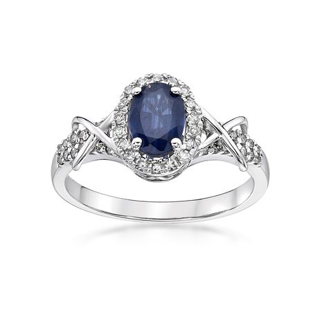 Embrace elegance with our 10K White Princess Diana Sapphire and 0.24 cttw Diamond Ring. The genuine oval-cut sapphire is surrounded by a halo of diamonds, creating a radiant frame. The diamonds also form a semi-eternity design along the band. Crafted with precision and sophistication, this ring is a symbol of love and timeless beauty. Order now and experience the allure of royalty.