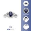 Gemminded 10K White Gold Princess Diana 7x5MM Oval Cut Genuine Sapphire and 0.25 cttw Diamond Ring