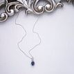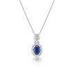 Gemminded 10K White Gold Princess Diana 7x5MM Oval Cut Genuine Sapphire and 0.24 cttw Diamond Pendant - 18 Inch Box Chain