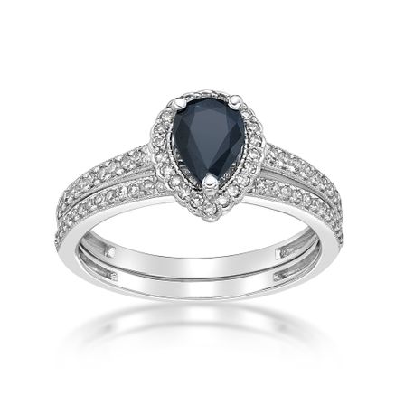 Gemminded 10K White Gold Ring with Sapphire and 0.29 carat Diamond