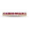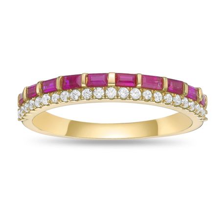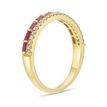 Gemminded 10K Yellow Gold 2.5x1.5 MM Geuine Ruby Semi-Eternity Ring with 0.16 Diamonds Accent