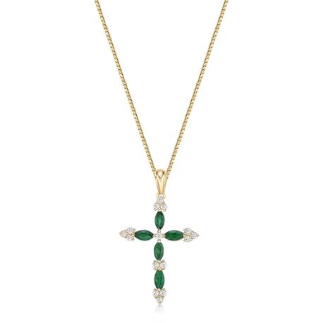 Geminded 10K Yellow Gold 4x2 Marquise Cut Genuine Emerald with 0.15 Carat Diamond Accents - 18 Inch Box Chain