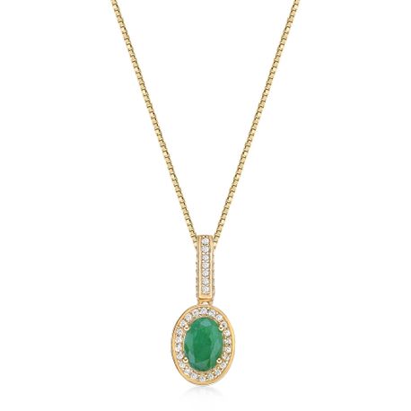 Geminded 10K Yellow Gold 7x5 Oval Cut Genuine Emerald Pendant with 0.25 Carat Diamond Accent - 18 Inch Box Chain