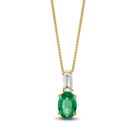 Gemminded 10K Yellow Gold Pendant with 6x4 Oval Cut Emerald and 4x2 Baguette White Topaz - 18 Inch Box Chain