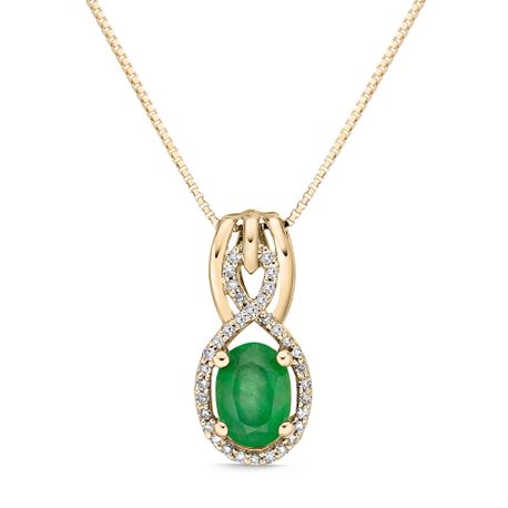 Add a touch of elegance to your ensemble with this stunning Women's Pendant. Crafted in 10K Yellow Gold, it features a 7x5 Oval Cut Genuine Emerald surrounded by a sparkling 0.11 carat Diamond Halo. The luxurious green hue of the emerald perfectly complements the warm tones of the gold, creating a captivating contrast. The friction clasp ensures a secure and worry-free wear. With its radiant beauty and timeless design, this pendant is sure to impress. Don't wait, order yours today!