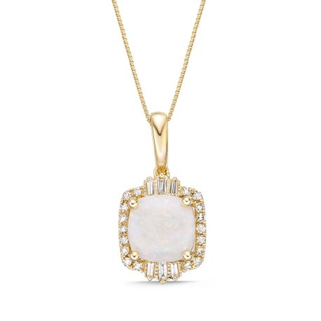 Gemminded 10K Yellow Gold Pendant with 8 MM Cushion Cut Genuine Opal and 0.24 Carat Diamond Halo - 18 Inch Box Chain
