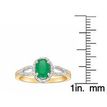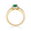 Gemminded 10K Yellow Gold Ring with 7x5 Oval Cut Emerald and 0.10 Carat Diamond Halo