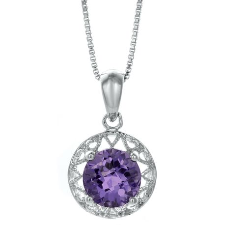 Gemminded 1.20 Ct Round Natural Purple Amethyst in Sterling Silver Birthstone Pendant