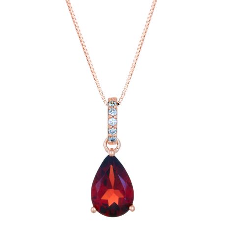 Turn heads with this eye-catching women's pendant featuring a vivid 1.38ct pear-shaped red garnet set in warm 10K rose gold. A delicate diamond accent adds sparkle, while the elegant 18-inch box chain and secure spring ring clasp complete the look. Romantic and radiant, this pendant is a timeless gift wrapped in sophistication.