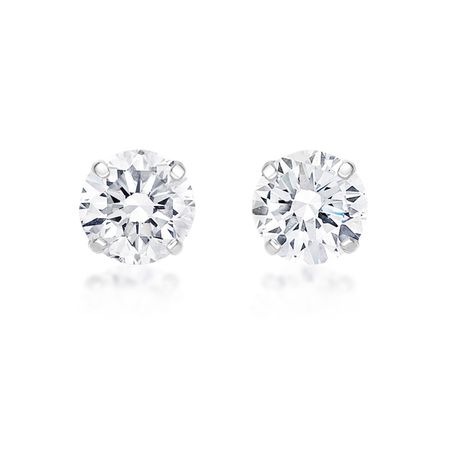 Gemminded 14K White Gold Round Cubic Zirconia Stud Earrings - 5MM