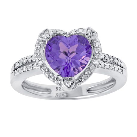 Gemminded 2.00 Heart Amethyst 925 Sterling Silver Ring with Diamonds