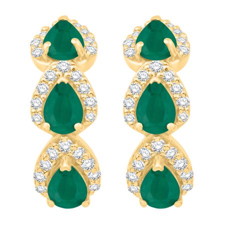 Gemminded 10K Yellow Gold 4x3 mm Pear Shaped Genuine Emerald Three-Stone Earrings with 0.26 Carat Diamond Accent - Snap In